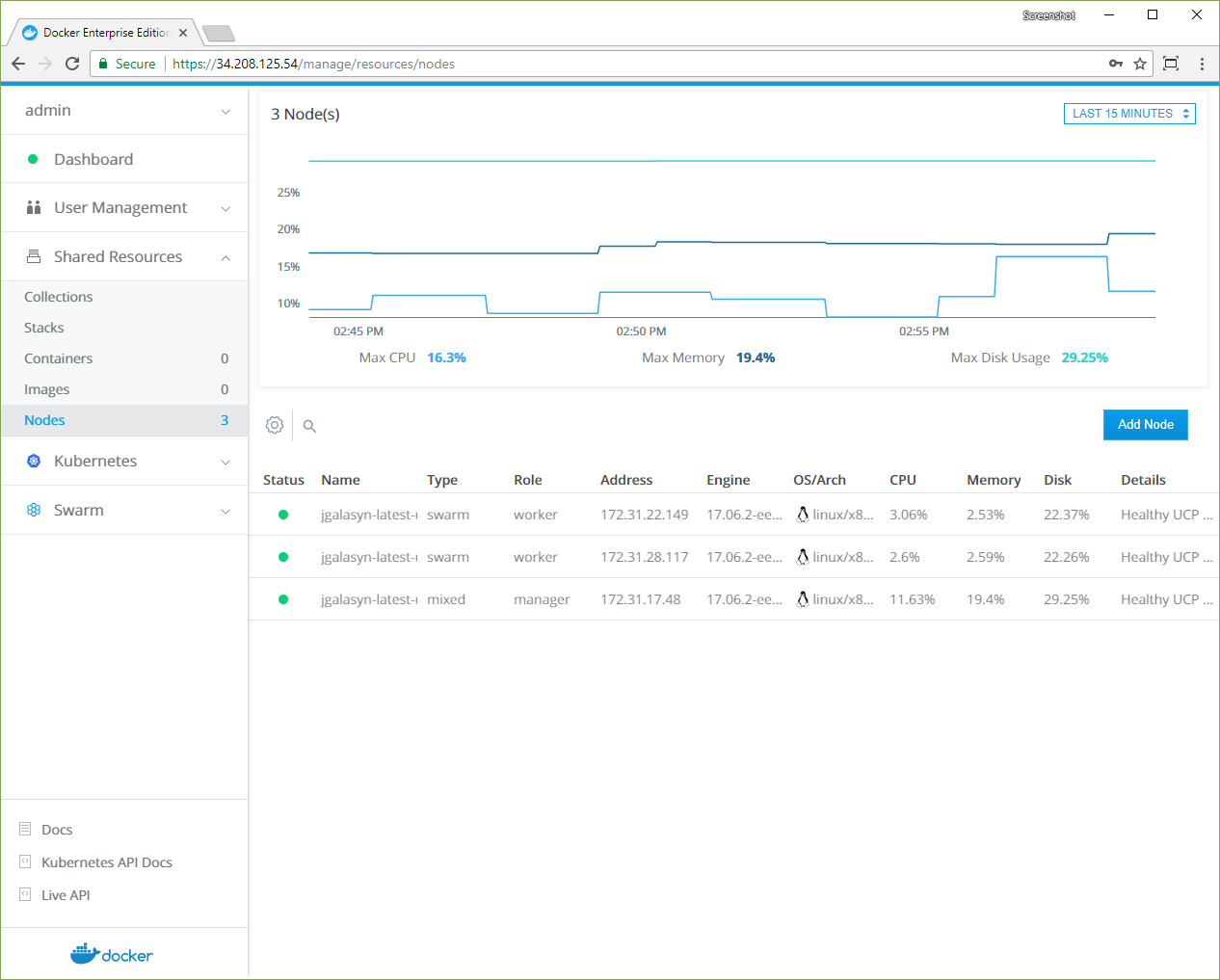 After you run the join command in the node, you can view the node in the UCP web UI.