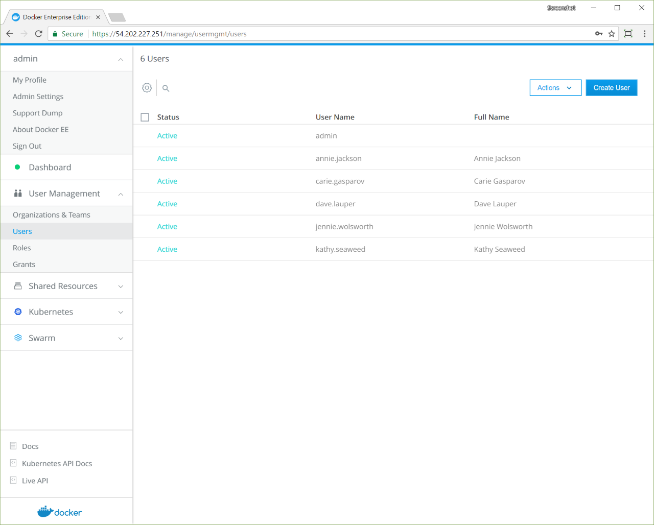 To use Docker EE’s built-in authentication, you must create users manually.