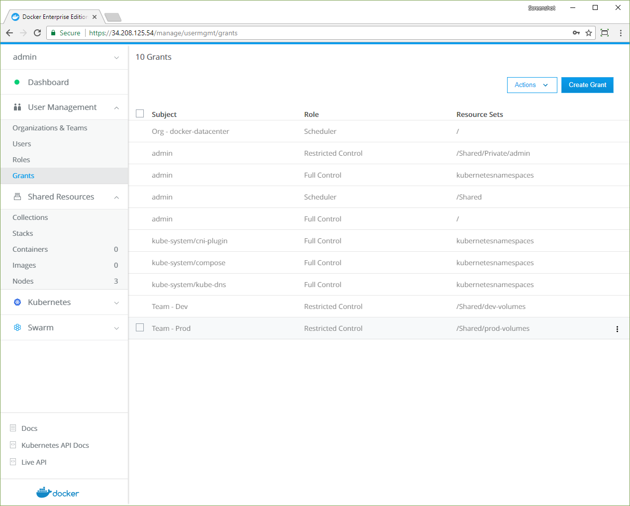 - Click Create Grant and repeat the previous steps for the /Shared/prod-volumes collection and the Prod team.