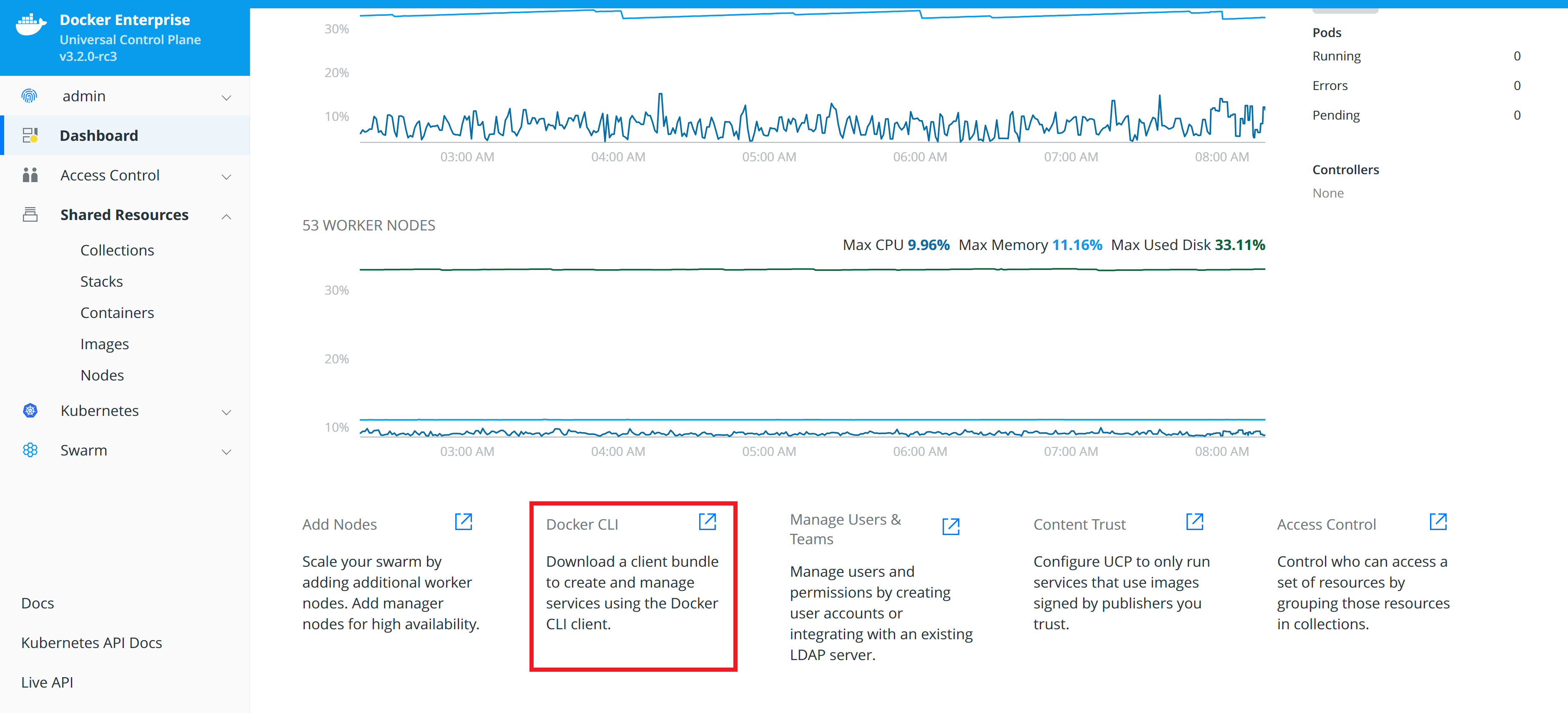 With Universal Control Plane you can continue using the tools you know and love like the Docker CLI client and kubectl. You just need to download and use a UCP client bundle.